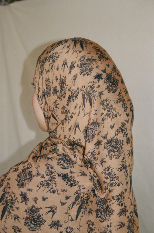 Mama’s Garden is a celebration of spring, designed for every girl to wear her way. Whether worn as a hijab, draped as a shawl, or wrapped effortlessly, this beautiful pattern brings a touch of nature’s elegance to any look.